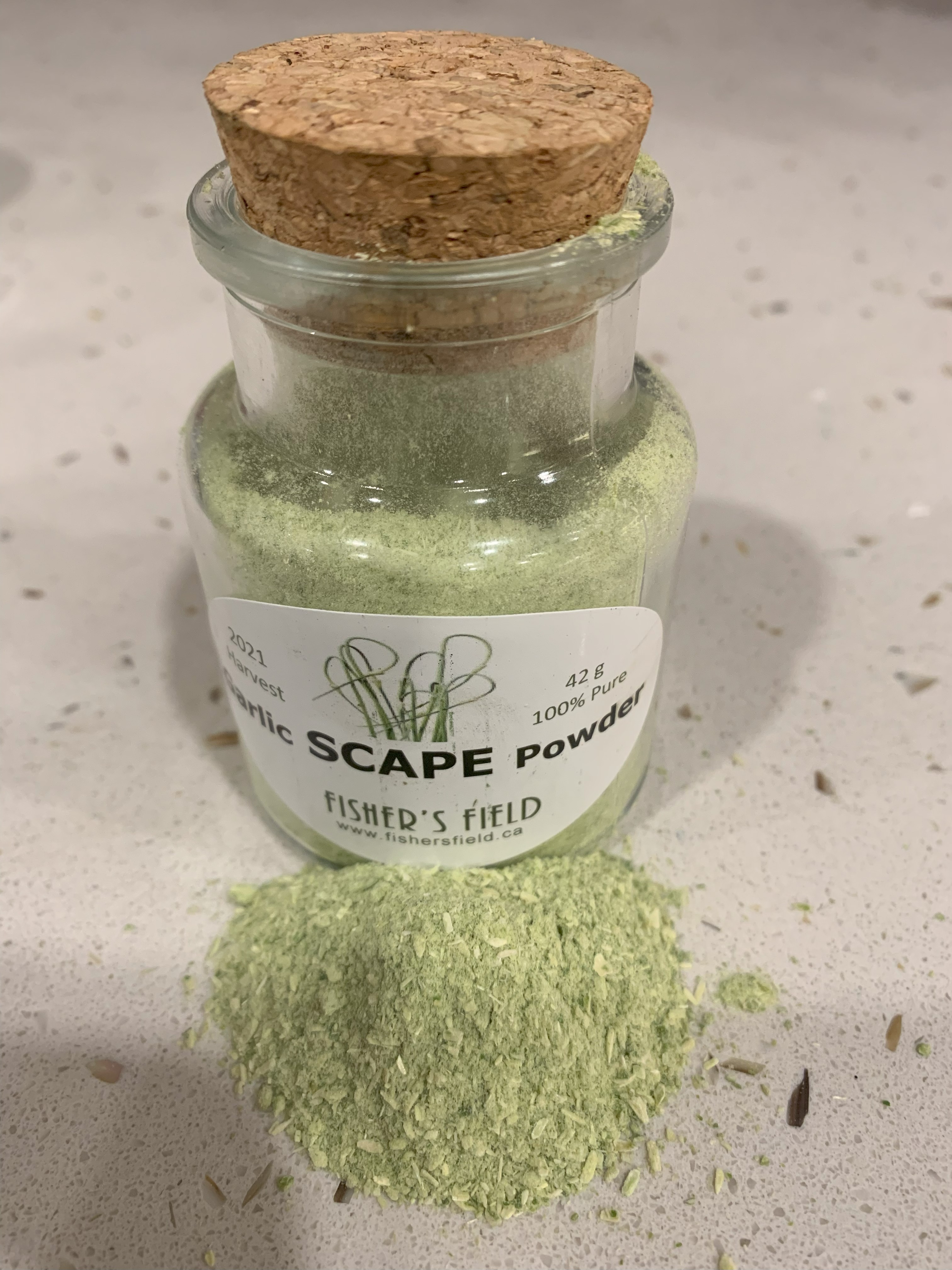Our Garlic Scape Powder is 100% organic and single ingredient. We simply dehydrate our freshly harvested scapes, grind them into a powder, and then bottle them. They simply don't need anything else for their tremendous flavour.